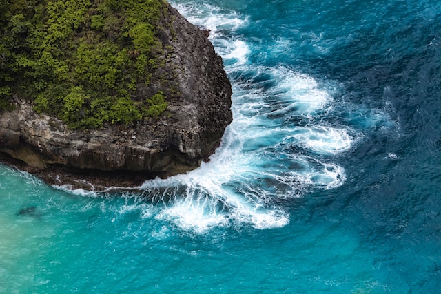 In the following example, the text is hard to read, especially when the white text matches the foam of the water: